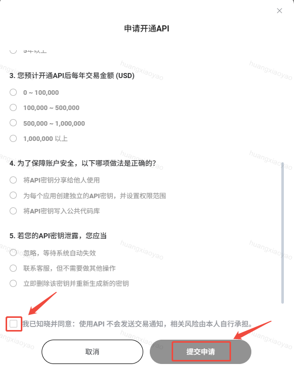 - 根据自我真实情况如实填写问卷,勾选知晓同意选项后点击【提交申请】