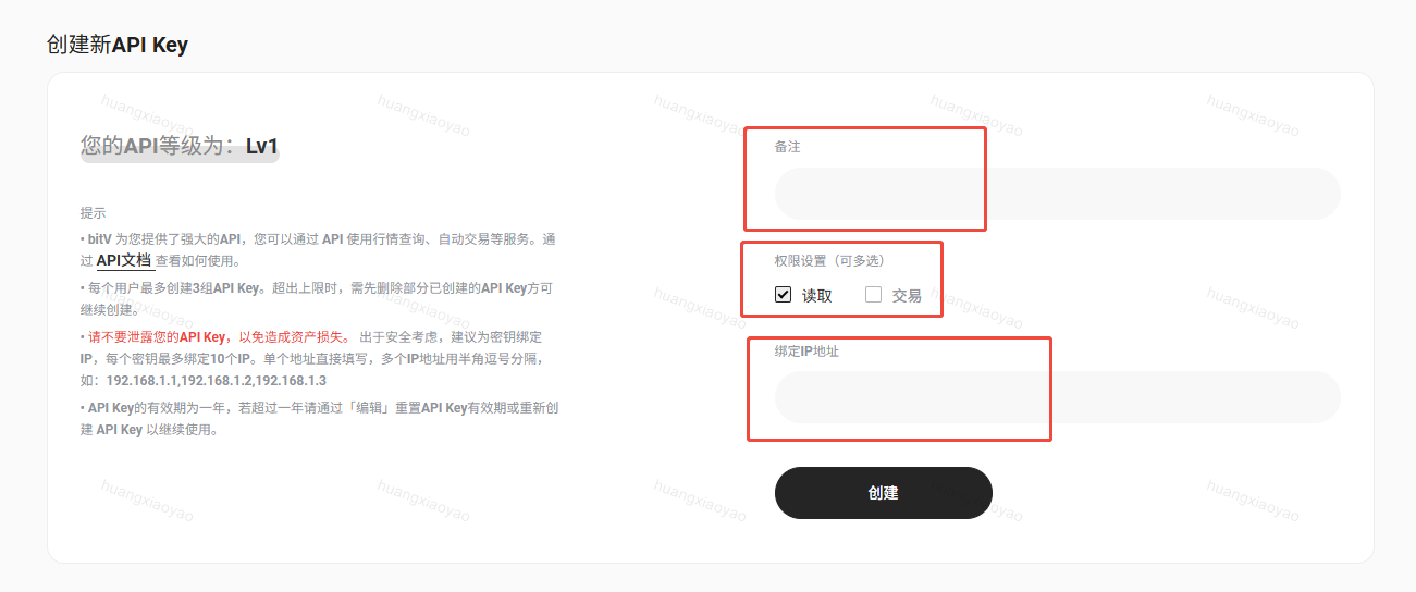 - 如果启用了 IP 绑定,只有列出的地址可以使用 API 密钥